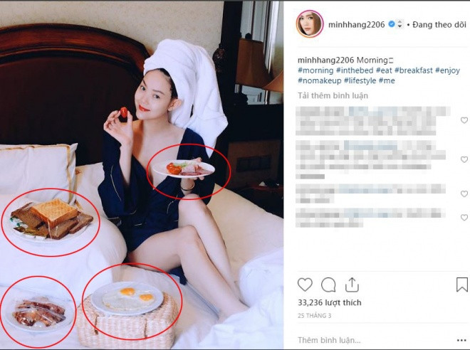 Những món ăn của Minh Hằng chia sẻ trùng hợp với món ăn mà chàng trai chia sẻ.