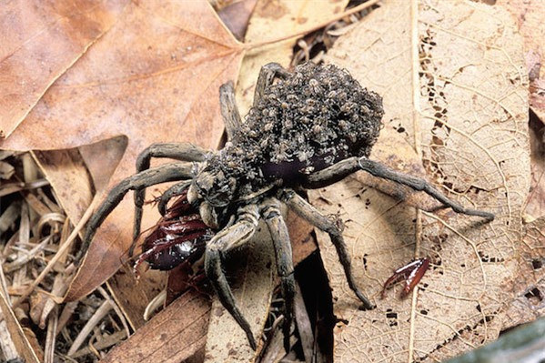 Chẳng có con vật nào muốn gây hấn với một con nhện sói cái vừa đẻ trứng. Bà mẹ động vật này vô cùng hung hăng khi bảo vệ túi trứng gắn chặt vào bộ phận nhả tơ của nó. Khi các quả trứng ấp nở, hàng trăm con nhện con trèo lên lưng của mẹ chúng. Nhện mẹ sẽ phải đưa chúng đi cùng suốt nhiều ngày trước khi các con phát triển hoàn thiện và có thể tự mình di chuyển đây đó.