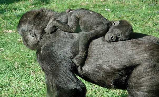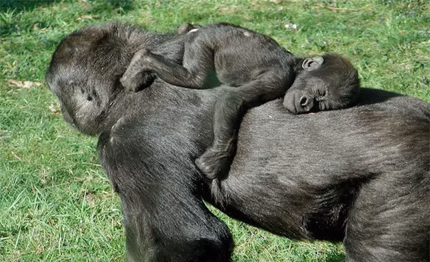 Khỉ đột là loài động vật linh trưởng lớn nhất thế giới, theo Sở thú Bronx. Các con khỉ đột trưởng thành thường nặng tới hàng trăm kilogam, với nhiều con cao như các vận động viên bóng rổ của chúng ta. Khỉ đột sơ sinh chỉ nặng khoảng 1,8 - 2,3 kilogam, nhưng chúng lớn rất nhanh. Cũng giống như con của các động vật linh trưởng khác, khỉ đột con cũng có các chân và bàn tay cầm nắm được từ lúc mới chào đời, cho phép chúng bám vào bộ lông của mẹ. Tuy nhiên, khỉ đột mẹ vẫn phải chăm bẵm thêm, không rời các con cho cho tới khi bàn tay và bàn chân bé nhỏ của chúng trở nên mạnh mẽ hơn.