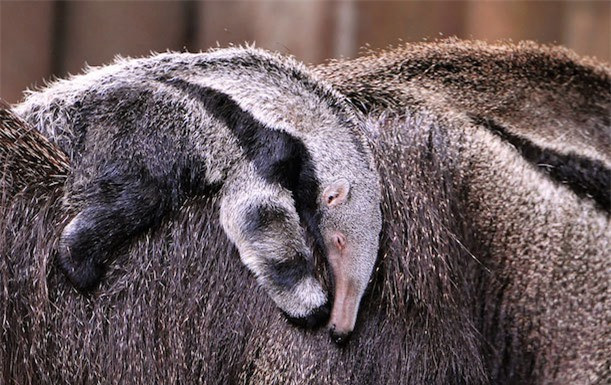 Nếu nhìn gần, bạn sẽ thấy thú ăn kiến con đang ngủ say sưa trên lưng mẹ. Nhưng đối với các động vật săn mồi từ xa, nó có thể bị nhầm lẫn là một phần của bộ lông thú ăn kiến mẹ. Trong thực tế, đây là một cách giúp bà mẹ động vật ngụy trang bảo vệ tài sản quý giá của nó.