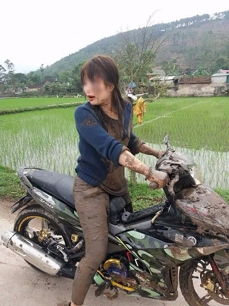 | Chàng trai vẫn 'ngẩng cao đầu' sau khi bạn gái cho sấp mặt xuống ruộng. |