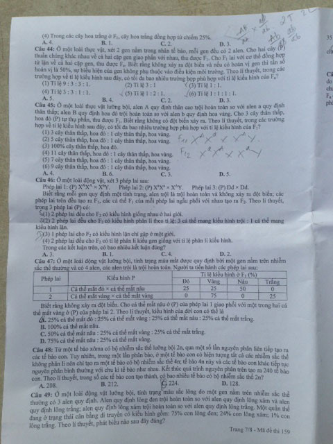 | Đề thi môn Sinh học THPT quốc gia 2015. |