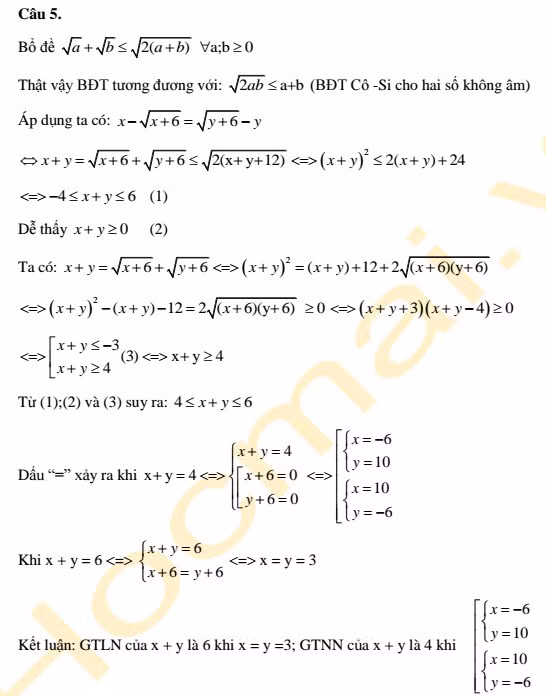 Lời giải môn Toán thi vào lớp 10 tại Hà Nội - Câu 1.