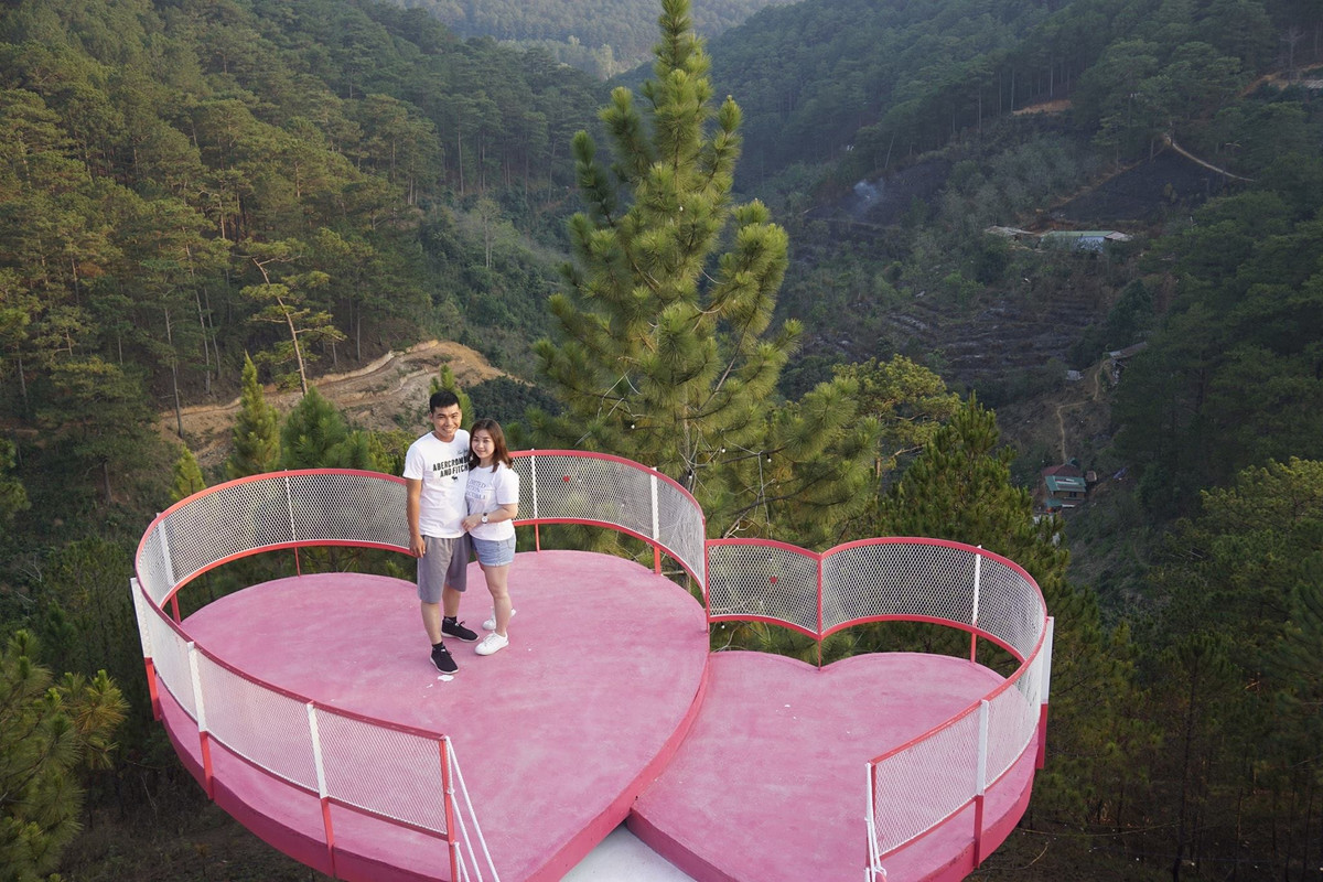 Được biết, cây cầu trái tim này thuộc khu tổ hợp vui chơi tại Đà Lạt, được xây dựng trên ngọn đồi cao với khung cảnh có thể nhìn ra thung lũng tuyệt đẹp.