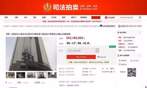 Theo Channel News Asia, tòa nhà 39 tầng, cao 156 mét nằm ở Thái Nguyên, phía bắc tỉnh Sơn Tây, Trung Quốc đã được rao bán trên trang đấu giá Taobao. Phiên đấu giá công khai dự kiến sẽ được bắt đầu vào 2-3/1/2018.