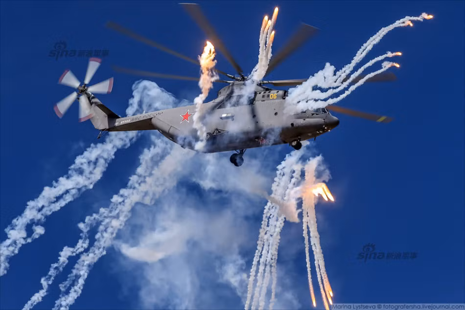 Pháo sáng mồi bẫy tên lửa hồng ngoại luôn được các máy bay chiến đấu – trực thăng Nga tận dụng để biểu diễn có lẽ là nhiều nhất trên thế giới.