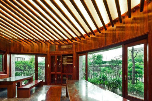 Nhìn từ xa, ngôi nhà “vườn cây trên mái” như nằm lấp ló trong một rừng cây xanh, chính vườn cây được trồng trên mái đã tạo nên hiệu ứng 3 chiều đặc biệt này. Ngoài chức năng thẩm mỹ, những cây xanh ở trên mái nhà sẽ tạo ra bóng râm ngăn cản đáng kể bức xạ nhiệt mà mặt trời chiều xuống ngôi nhà, giúp không gian bên trong luôn mát mẻ.