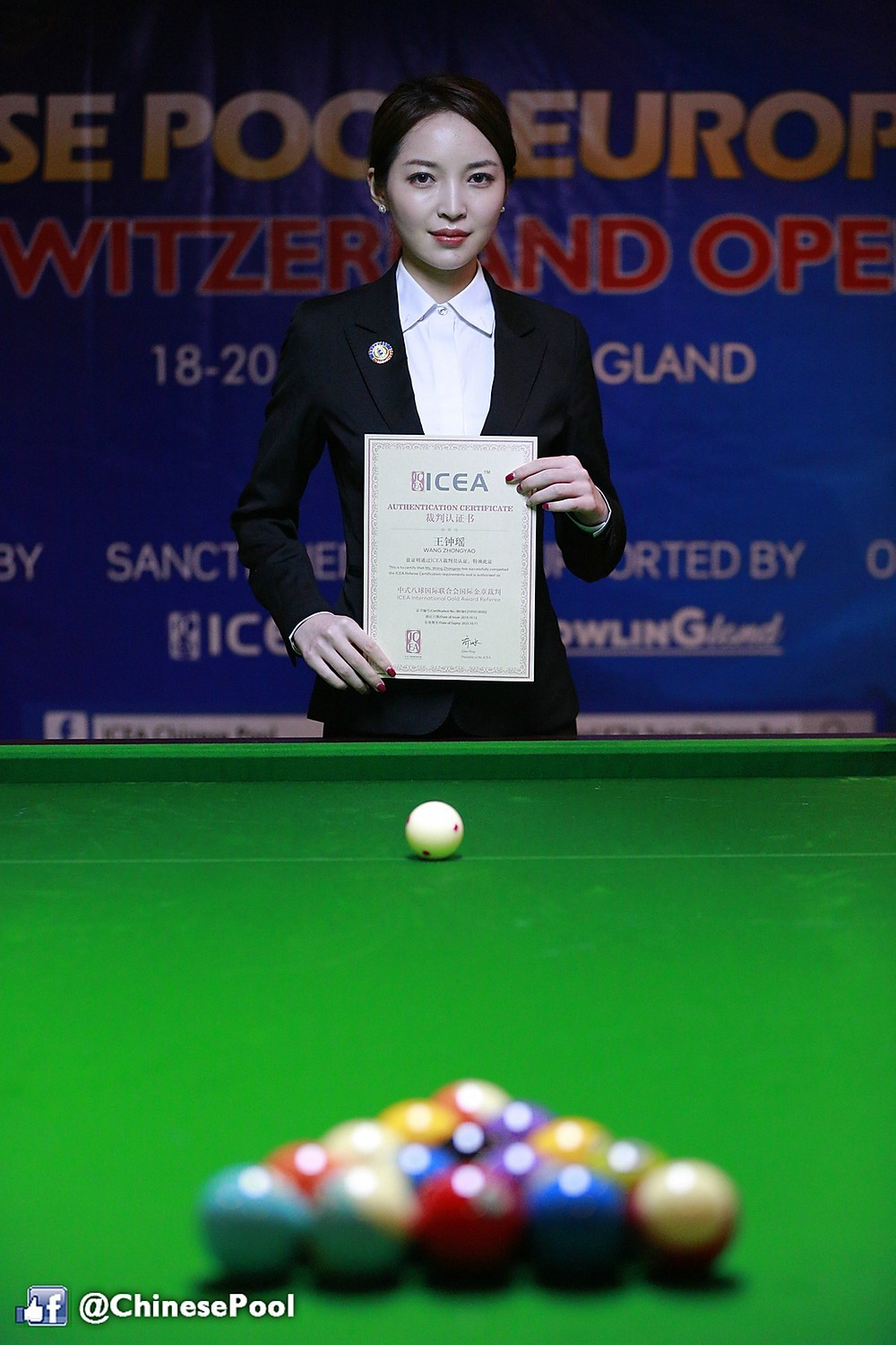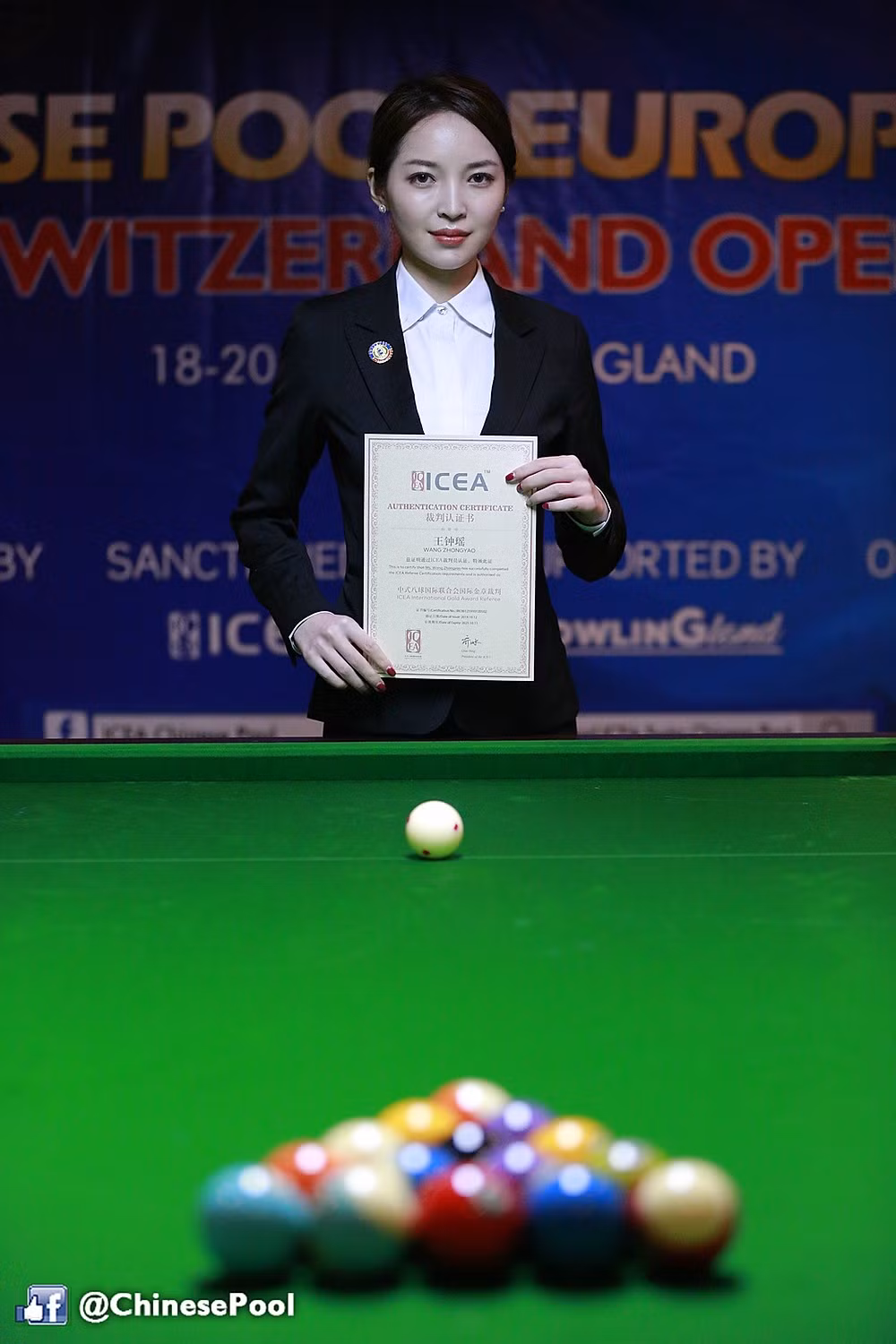 Chẳng những xinh đẹp, Wang Zhongyao còn từng đạt giải Vàng trong kỳ xét tuyển trọng tài chuyên nghiệp của Hiệp hội bi-a Trung Quốc.