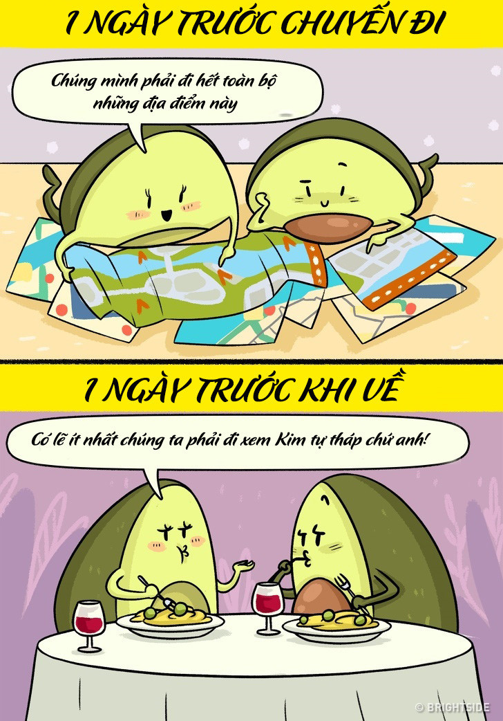 | Con gái luôn muốn mang theo cả thế giới khi đi du lịch. Và tất nhiên, các chàng trai sẽ phải là người gánh vác "cả thế giới". |