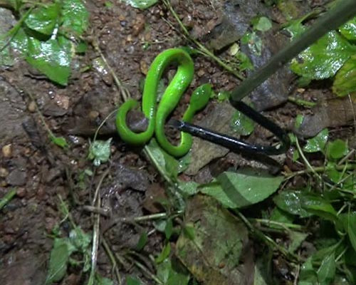 | Và một con rắn lục đuôi đỏ con được tìm thấy. |