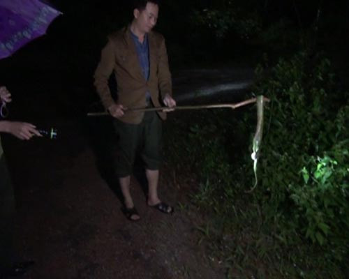 | Thêm một con rắn lục đu bám trên thân cây. |