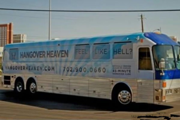 Tại Las Vegas, bạn có thể thuê chiếc xe buýt dành cho người say xỉn khi lỡ quá chén. Nhân viên trên xe sẽ truyền nước điện giải cho bạn, cho bạn uống thuốc chống nôn và thuốc giảm sưng, đảm bảo duy trì cơ thể và tinh thần khỏe mạnh cho bạn. Đương nhiên, dịch vụ này không hề rẻ chút nào.
