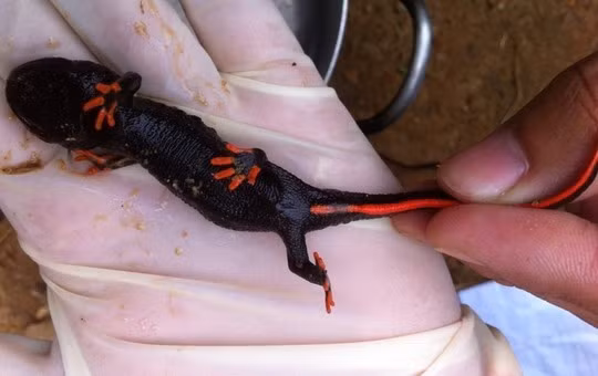 Cá cóc lai thằn lằn có 4 chi được cán bộ Khu bảo tồn thiên nhiên Pù Hoạt (Nghệ An) phát hiện vào tháng 8/2014. Loài này có hình dạng giống thằn lằn màu nâu sẫm, toàn thân có nốt sần nhỏ. Phía mặt dưới bụng có những nếp nhăn nằm ngang xếp thẳng hàng nhau. Chi trước có 4 ngón, chi sau có 5 ngón. Mặt dưới các ngón và rìa phía dưới của đuôi nhọn dài có màu cam.