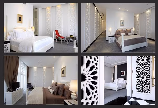 Ngay khi bước vào, bạn sẽ choáng ngợp với một không gian hiện ra với hai màu đen - trắng chủ đạo, những dải lụa được buông lơi bên khung cửa, mùi trầm hương phảng phất khiến bạn có cảm giác như lạc vào xứ sở thần tiên.