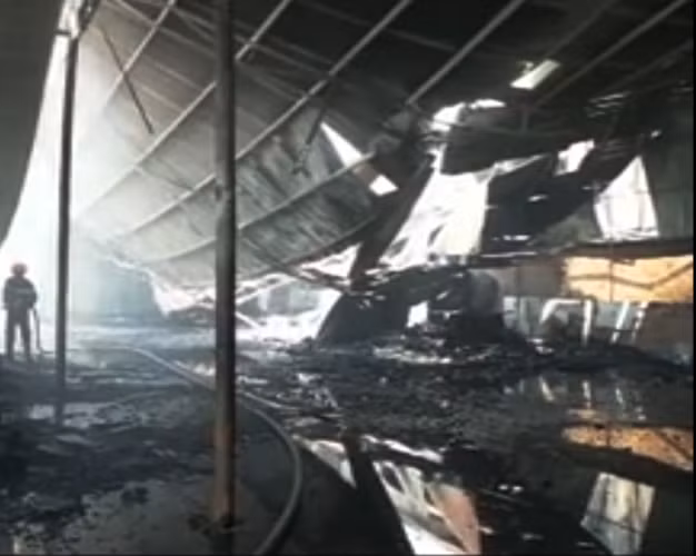 Nhà kho hàng ngàn m2 sập đổ sập sau hỏa hoạn
