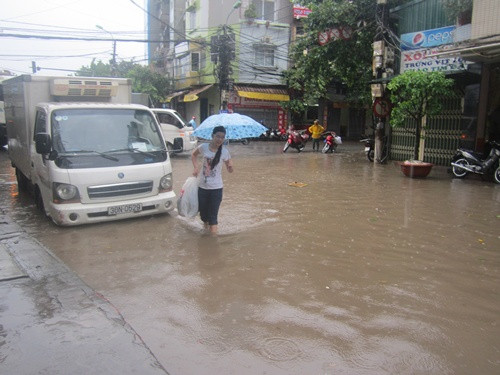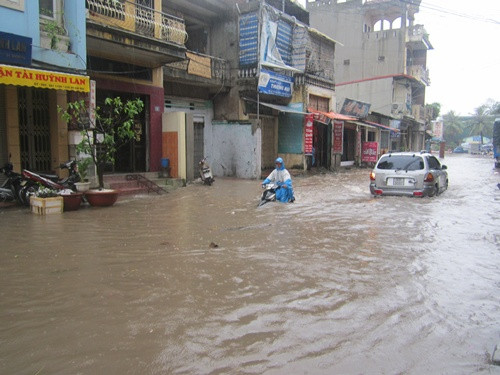 Trên đường Trương Định, mưa lớn làm gây ngập lụt hoàn toàn...
