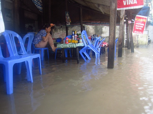 Nhiều hộ dân kinh doanh (đường Trương Định) gặp không ít khó khăn, vì bị nước ngập.