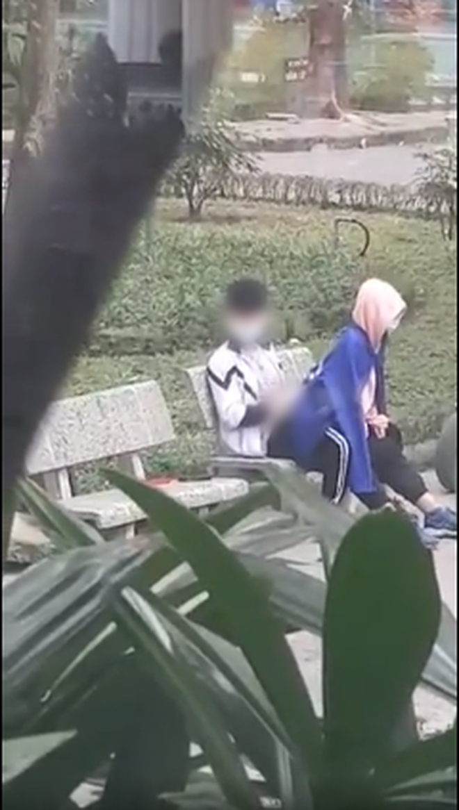 Hình ảnh một cặp đôi học sinh "mây mưa" giữa hồ nước ở công viên. Được biết, bức ảnh được chụp tại công viên Bạch Đằng (Hải Dương). Ảnh: Facebook