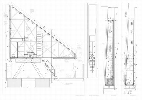 Nội thất bên trong căn hộ tí hon được sắp xếp rất thông minh. Khu vực bếp có chiều rộng 90cm với bồn rửa thu nhỏ, chiếc cửa trượt giúp ngăn cách với phòng tắm hẹp. Bằng một chiếc thang nhỏ để lên tầng hai nơi đặt một chiếc giường có kích thước chỉ đủ cho một người nằm.