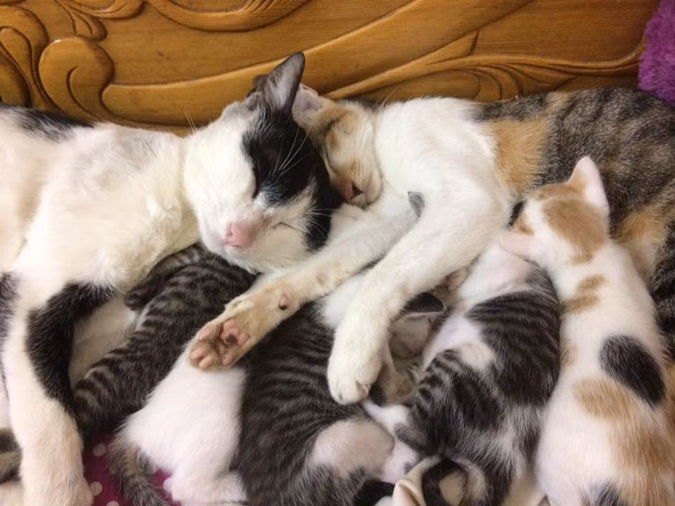 Mới đây, các diễn đàn, trang mạng xã hội liên tục chia sẻ những khoảnh khắc tràn đầy hạnh phúc của một gia đình nhà mèo gồm có vợ chồng mèo bố vàng - mèo mẹ màu tam thể cùng đàn con mới chào đời. Đi kèm với hình ảnh này, một cư dân mạng - chủ nhân của những chú mèo có tên facebook Thuy Duong Panda (hiện đang sống tại Hà Nội) chia sẻ đầy hài hước rằng: "Mèo nhà tớ sinh mà thằng bố nó hồi hộp hơn cả tớ. Vợ đẻ thì cứ rối hết cả lên. Ngồi canh xong ngủ gật, vợ đẻ xong vợ cứ đi ăn hay đi tè là lại vào bế với ấp con. Mèo bố của năm đây rồi”.