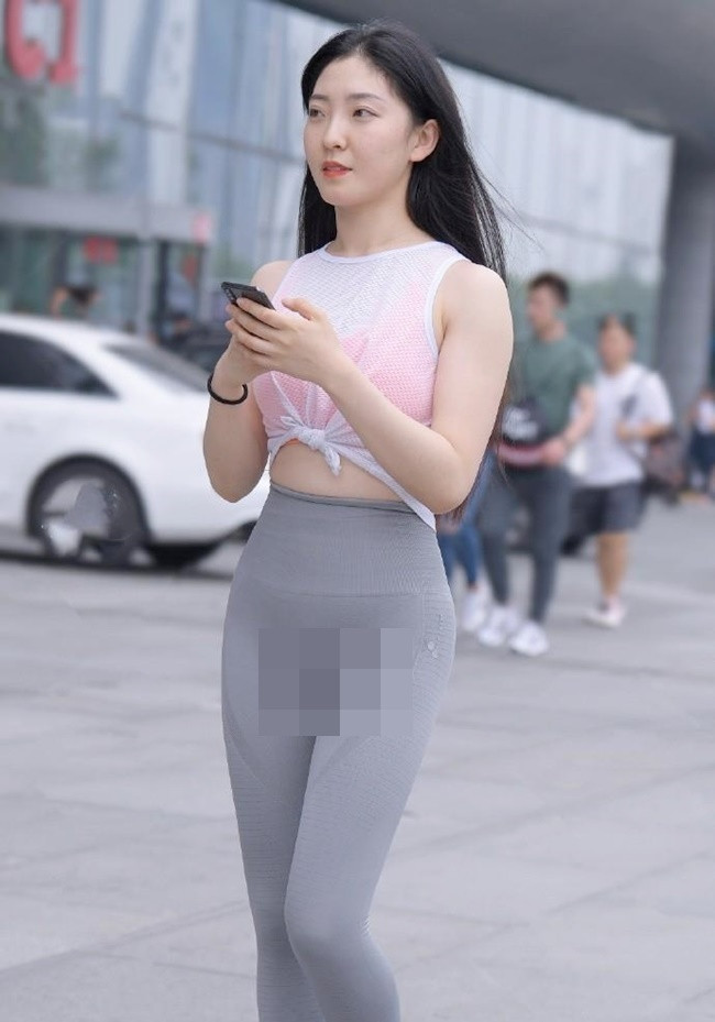 Bộ đồ trông khá kín đáo khi cả ống tay và ống chân đều dài, duy chỉ lộ một khoảng nhỏ ở vùng eo. Tuy nhiên, điểm khiến cô gái nhận chỉ trích nặng nề lại nằm ở "tam giác nhạy cảm".