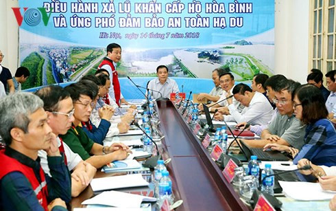 Theo Ban Chỉ đạo Trung ương về Phòng chống thiên tai, do mưa lớn liên tục trong tháng 6 vừa qua và ảnh hưởng từ cơn bão số 2 khiến mực nước trên các hồ thủy điện miền Bắc ở mức cao. Lúc 10 giờ sáng nay, mực nước ở hồ Hòa Bình ở cao trình 105,84 mét, trong khi đó, lưu lượng nước đổ về hồ là 3.060 m3/giây. Theo quy trình vận hành liên hồ chứa trên lưu vực sông Hồng, Ban chỉ đạo Trung ương về Phòng chống thiên tai lệnh: Giám đốc Công ty thủy điện Hòa Bình mở 2 cửa xả đáy ở hồ thủy điện Hòa Bình.
