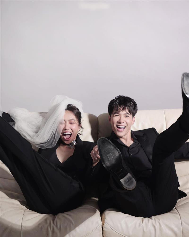 Trong suốt 2 ngày tổ chức đám cưới với Anh Tú, Diệu Nhi chọn toàn bộ trang phục trắng với những thiết kế phá cách nhưng vẫn vô cùng nữ tính. Tuy nhiên mới đây, nữ diễn viên cùng chồng thực hiện thêm một bộ ảnh cực chất với suit đen. Vẫn đeo voan cô dâu nhưng Diệu Nhi chọn suit thay vì các loại váy áo điệu đà khác.