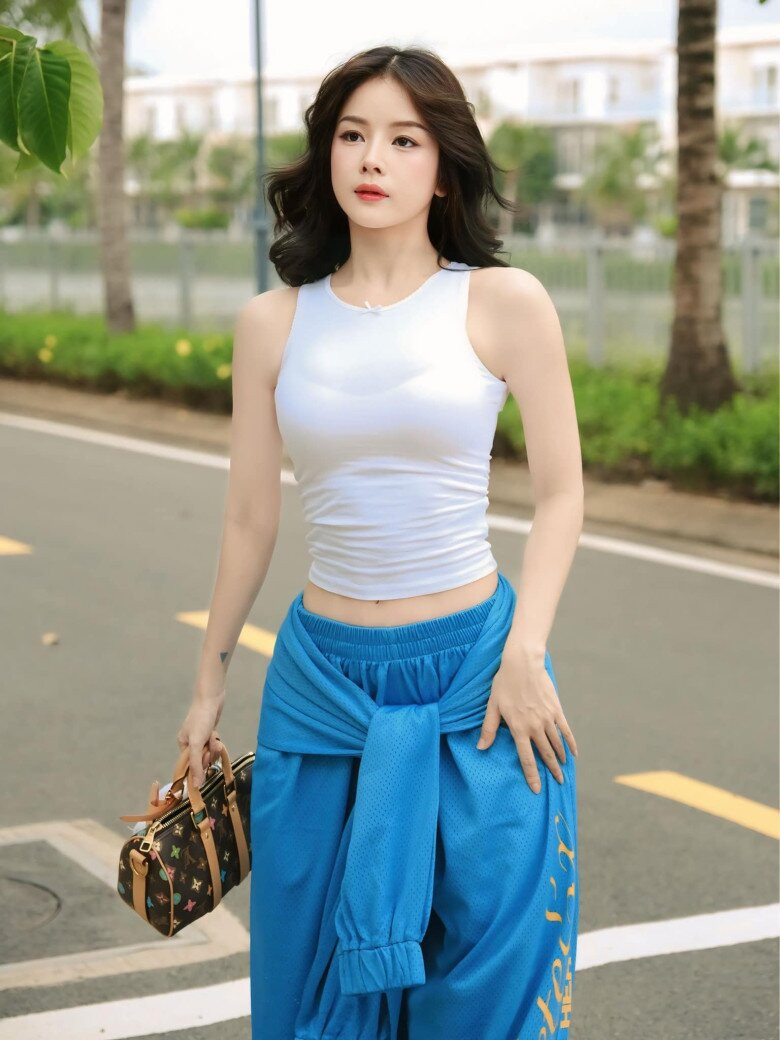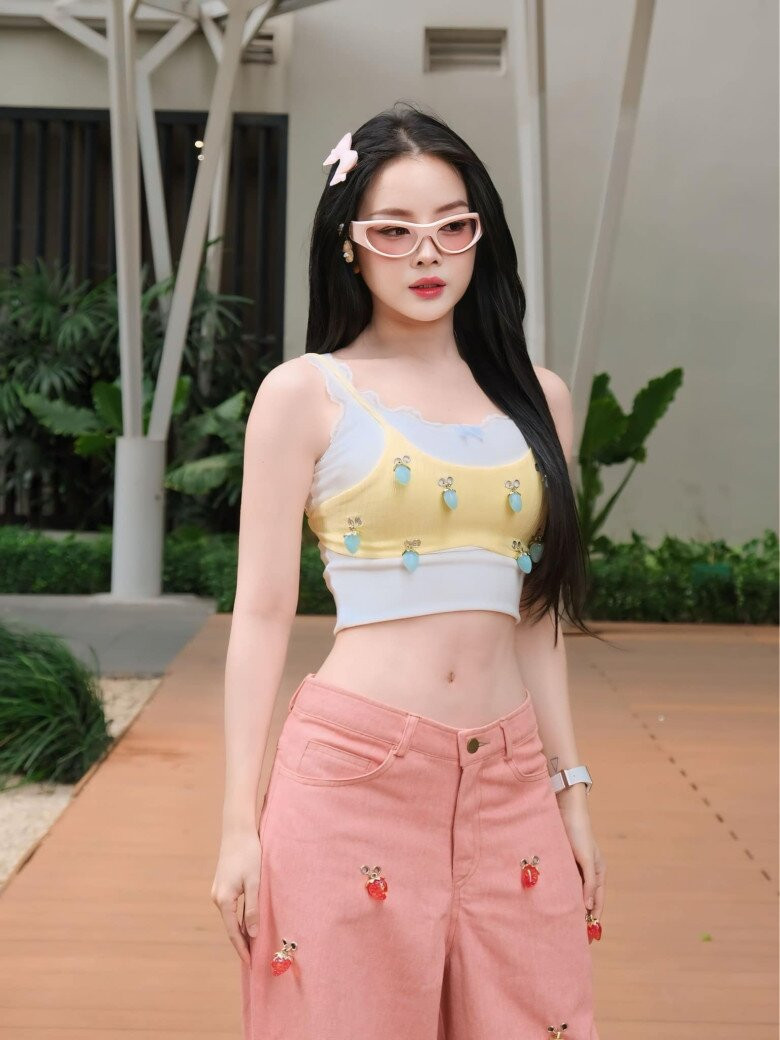 Mie thường mix&match áo croptop với đa dạng item như denim, chân váy, quần jogger.
