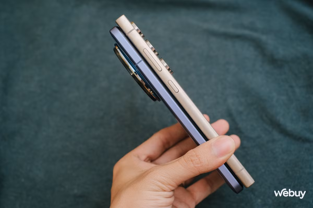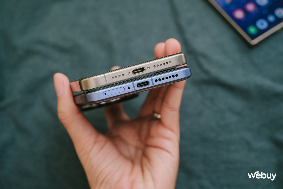 Trên thực tế, đối với người dùng bình thường, việc phân biệt giữa titanium và nhôm không đơn giản. Vật liệu Titan về cơ bản cho một trọng lượng thân máy nhẹ hơn (iPhone 15 Pro Max nhẹ hơn bản tiền nhiệm khoảng 10%), đồng thời gia tăng độ bền cho khung viền. Từ ảnh trên ta có thể thấy Xiaomi 14 Ultra có độ dày trông thì có vẻ mỏng hơn iPhone 15 Pro Max, nhưng nếu tính cả độ dày cụm camera thì là 9,2mm, dày hơn tương đối so với 8,3mm trên iPhone 15 Pro Max. Trọng lượng 2 máy lần lượt là 219 grams và 221 grams, khá tương đồng nhau