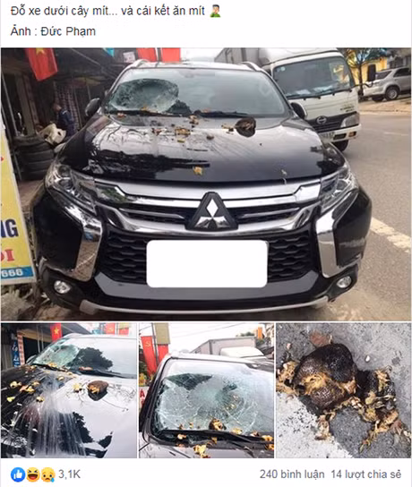 Một chủ ô tô vừa gặp phải tình huống "khóc thét" cũng vì chuyện đỗ xe dưới cây mít khiến dân mạng vừa thương vừa buồn cười.