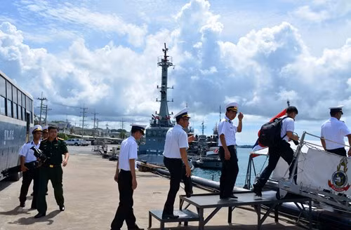 Các thành viên đoàn công tác tham quan tàu hộ vệ tên lửa 456.