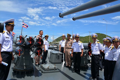Trong hành trình huấn luyện thực hành và kết hợp thăm, giao lưu Hải quân Hoàng gia Thái Lan, đoàn công tác Học viện Hải quân vừa có buổi tham quan tàu hộ vệ tên lửa 456 của Hải quân Thái Lan tại căn cứ Sattahip.