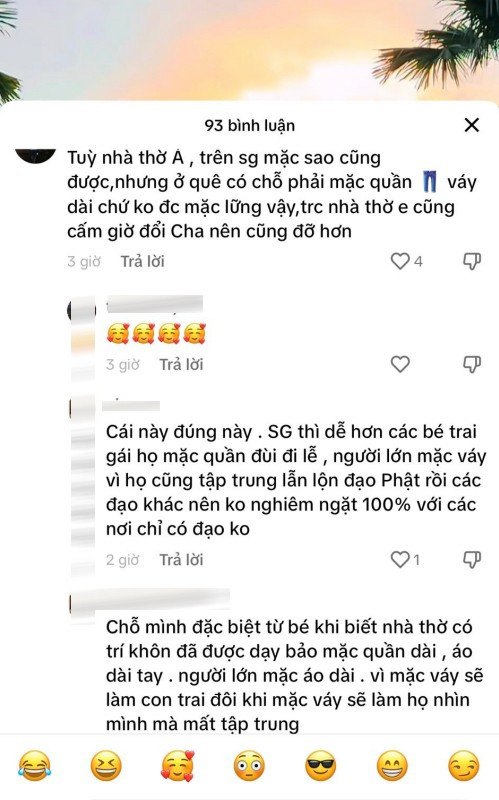 Đáp trả lại lời bình luận của một tài khoản là: "Vẫn nên mặc đồ trang nghiêm khi đi lễ, đặc biệt còn là đại lễ", người đẹp viết: "Ủa chứ ai mặc gì không trang nghiêm".