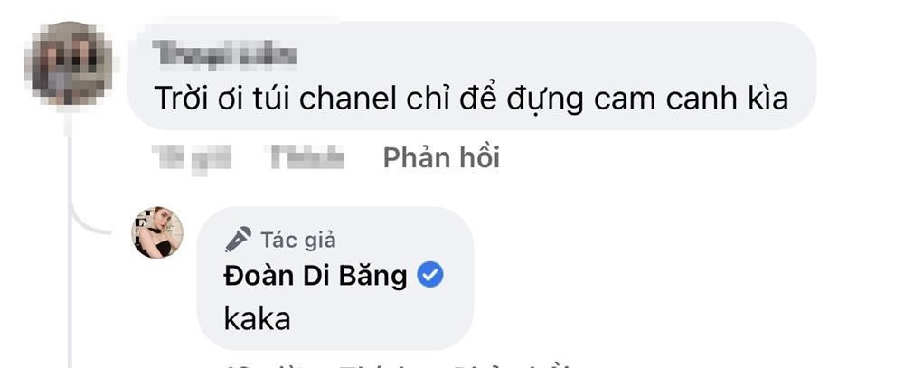 Mới đây, trên trang cá nhân, Đoàn Di Băng hào hứng chia sẻ thành quả của chuyến đi du lịch Đà Lạt. Bà mẹ 3 con cùng cả gia đình đi hái cam ngay tại homestay. Đáng nói, có lẽ vì không còn vật dụng để đựng cam, cô đã dùng luôn chiếc túi Chanel Handbag 22 size lớn Trong khi nhiều mỹ nhân thể hiện sự nâng niu chiếc túi trị giá gần 150 triệu đồng của Chanel, Đoàn Di Băng lại "đối xử" với item hàng hiệu này chỉ như một cái túi ni lông bình thường không hơn không kém