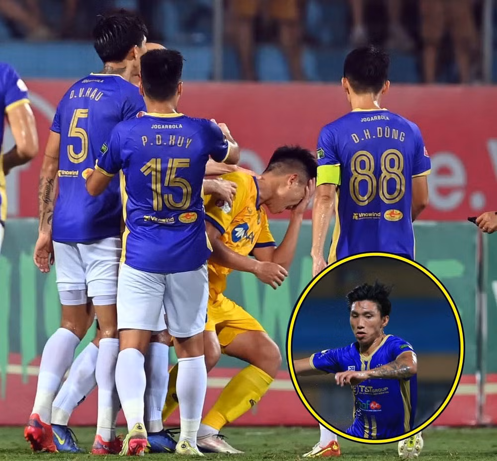 Cụ thể, khi bị ôm kèm sát, hậu vệ Đoàn Văn Hậu vung tay cao đẩy vào mặt hậu vệ Đà Nẵng. Ngay lập tức, trọng tài Nguyễn Mạnh Hải cắt còi nhắc nhở và dừng ở mức cảnh cảo.