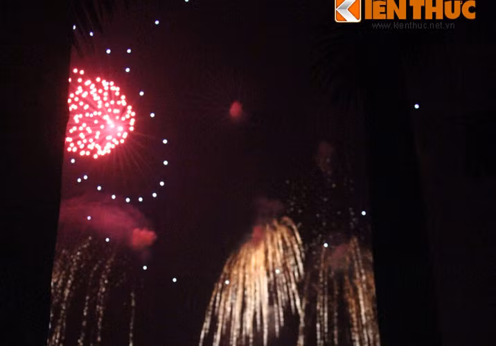 | Những chùm ánh sáng lộng lẫy đủ sắc màu bừng nở giữa trời đêm Hà Nội, đẹp như mơ. Ảnh: Anh Tú. |
