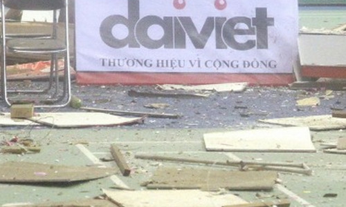 | Mảnh vỡ từ trần nhà văng tứ tung. Ảnh: T.P. |