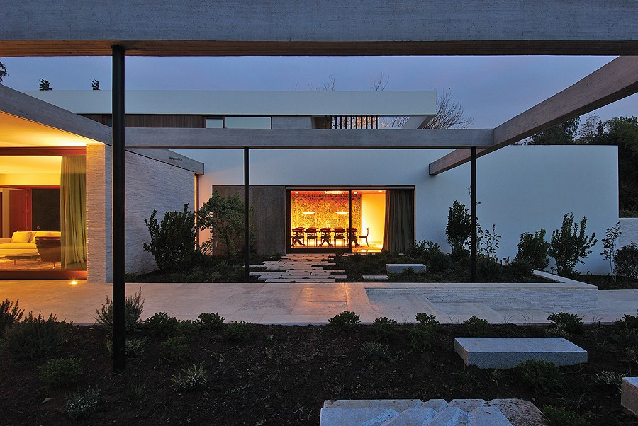 Không gian ngôi nhà được thiết kế theo dạng hình chữ “H” phù hợp với hình dạng của khu đất, không làm ảnh hưởng đến thảm thực vật xung quanh.