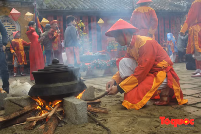 Sau các nghi lễ, 10 lính vệ tiến hành dựng nêu...