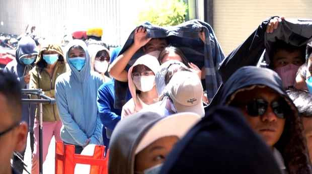 Dù thời tiết khá nắng nóng nhưng đã có rất đông người xếp hàng chờ để có được xăm từ chiếc máy tự động này vào đầu năm