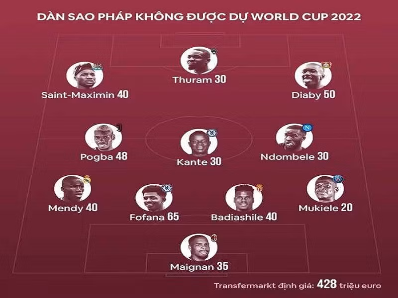 Đội hình "tỷ USD" của đội tuyển Pháp không dự World Cup 2022
