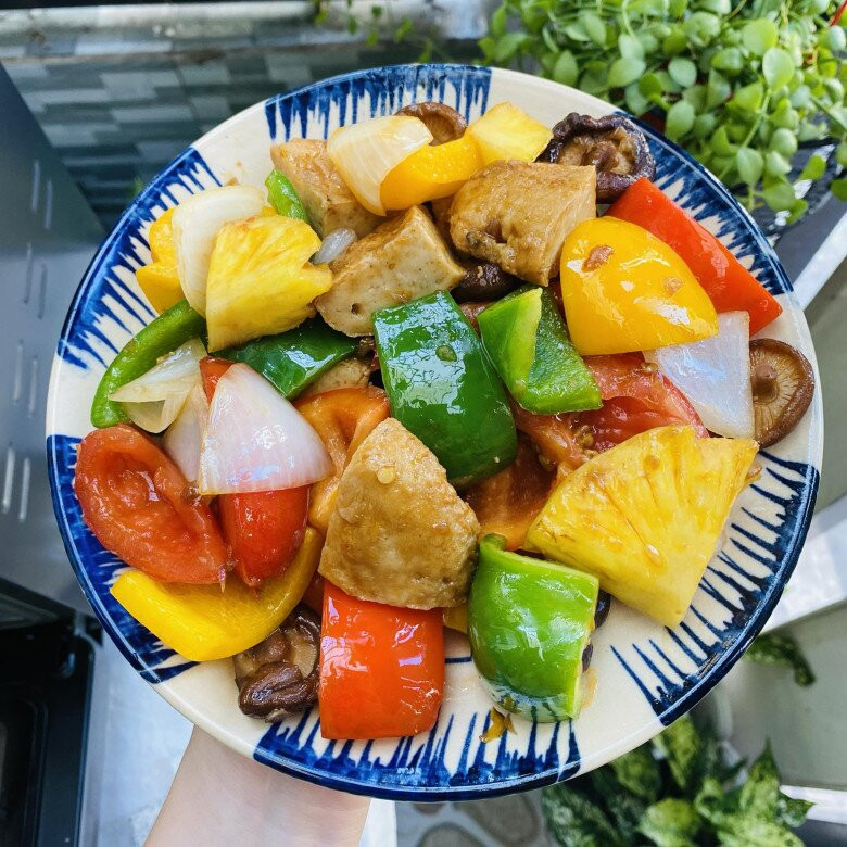 - Bày chả cá chay xào chua ngọt ra đĩa và thưởng thức. Món này ngon hơn khi ăn nóng cùng cơm trắng, chấm kèm với nước tương tuỳ thích.