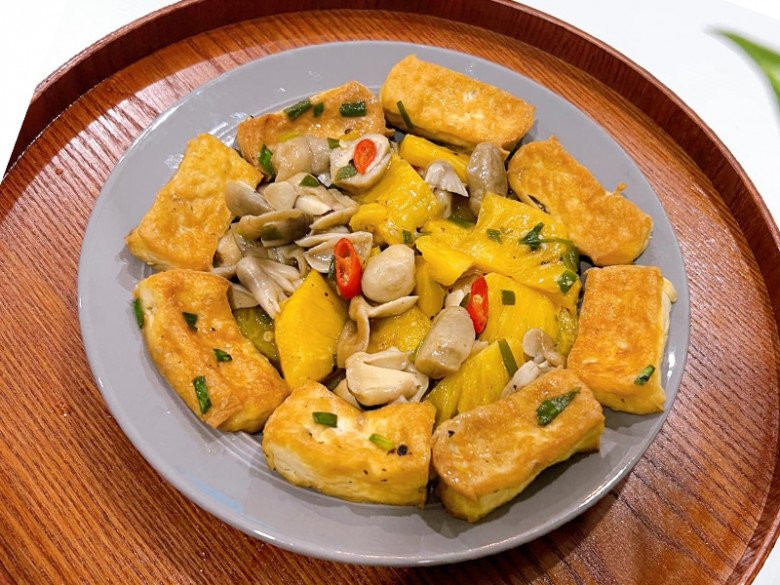 Đậu hũ kho nấm dứa mềm ngon, đậm đà nhưng cũng thanh đạm, đặc biệt trôi cơm.