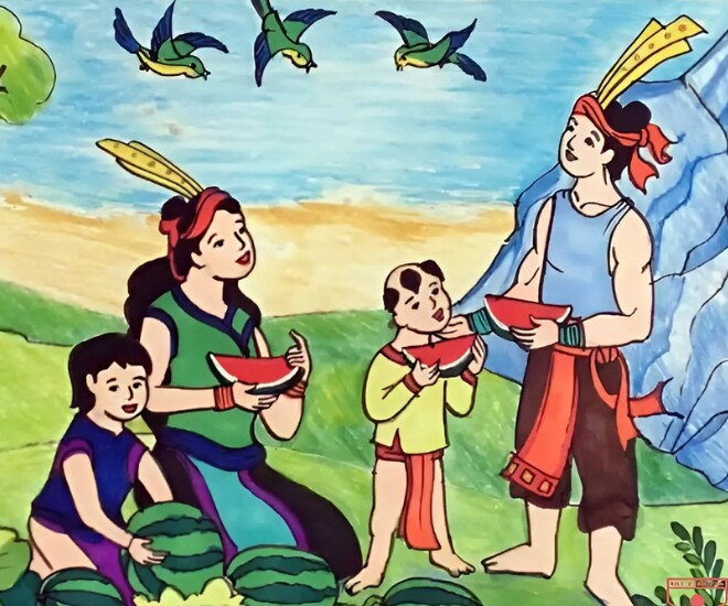 Tương truyền, vua Hùng Nghị Vương (vị vua thứ 17) có một người con nuôi tên là Mai An Tiêm, được xem là ông tổ nghề trồng dưa hấu ở Việt Nam. Theo ghi chép, Mai An Tiêm vốn là nô bộc nhưng nhờ tài trí mà được nhà vua yêu mến, nhận làm con nuôi. Sau này, ông được lấy con gái nuôi của Hùng Vương là nàng Ba làm vợ. Tuy nhiên, vì bản tính cương trực và tự lập, Mai An Tiêm thường nói: “Của biếu là của lo, của cho là của nợ!” khiến nhiều quan lại ganh ghét, tâu lên vua rằng ông kiêu ngạo, không biết ơn. Vua Hùng nổi giận, đày cả gia đình Mai An Tiêm ra một hòn đảo hoang ngoài biển để tự sinh tồn.
