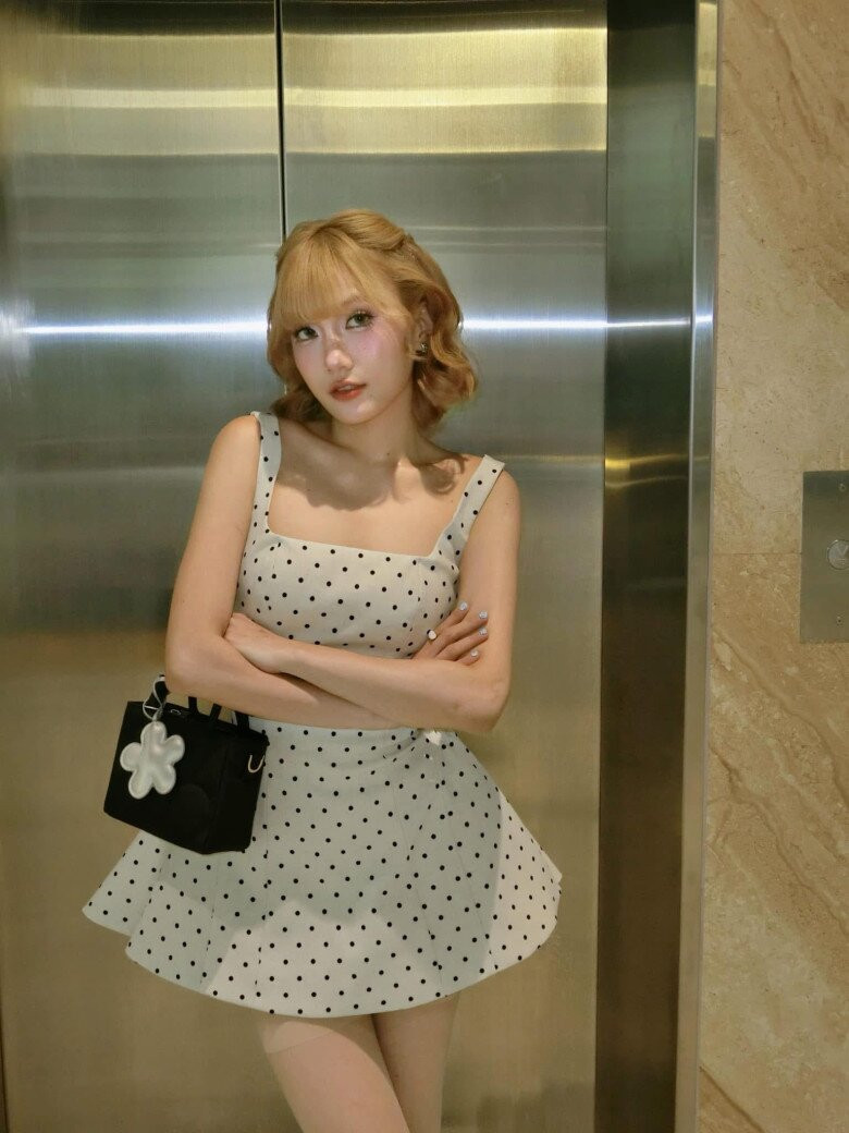 Thỉnh thoảng, cô nàng cũng ứng dụng váy áo nhẹ nhàng và ngọt ngào nhưng vẫn không quên có độ ngắn khá bạo.