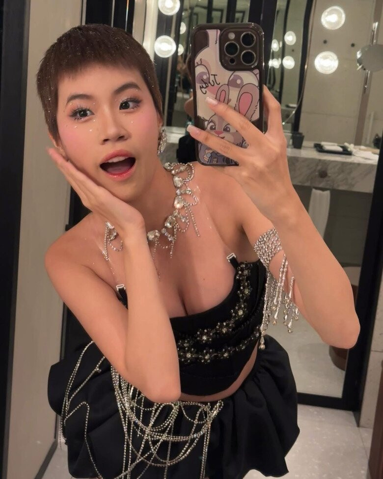 Hồi năm ngoái, cô cạo đầu húi cua để hiến tóc cho bệnh nhân ung thư. Từ đó đến nay, kiểu tóc phá cách này cũng gắn bó với hình ảnh của rapper sinh năm 2003.