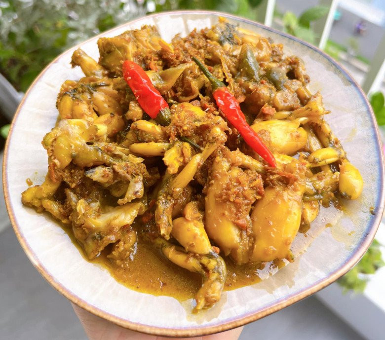 Thịt ếch kho sả nghệ thơm nồng, vàng ươm, đậm đà, thịt ếch mềm ngọt, ăn với cơm thật chẳng còn gì hấp dẫn bằng.