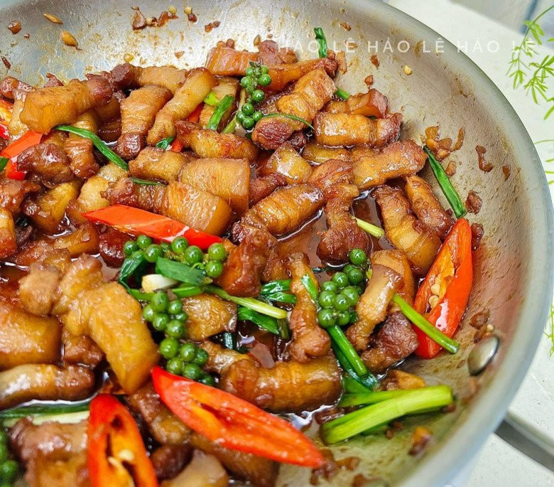 Cho thịt kho tiêu ra bát, ăn nóng với cơm. Thịt kho tiêu thơm nức, mềm núng nính, béo ngậy đậm đà lại có chút ngọt nhẹ, cay cay ai ăn cũng thích.