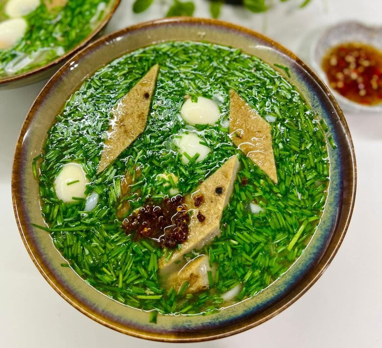 Sau đó múc bánh canh hẹ chả cá ra tô, thêm sa tế, hẹ đã cắt ngắn vào. Thêm xíu tiêu xay nữa đảm bảo ngon nhức nhối.