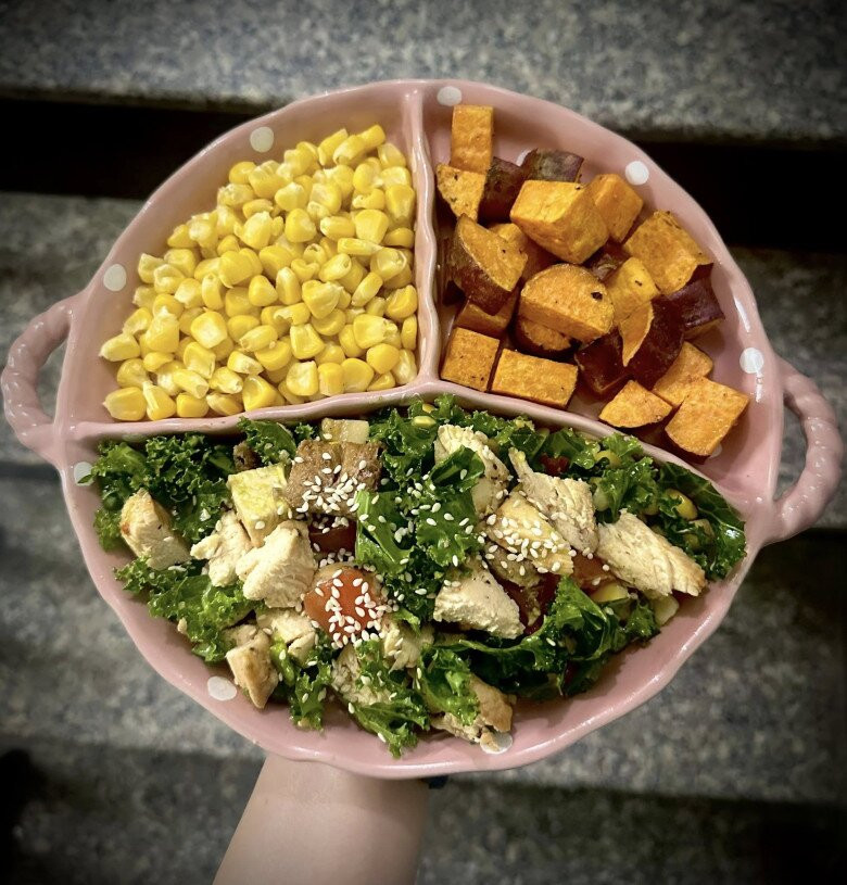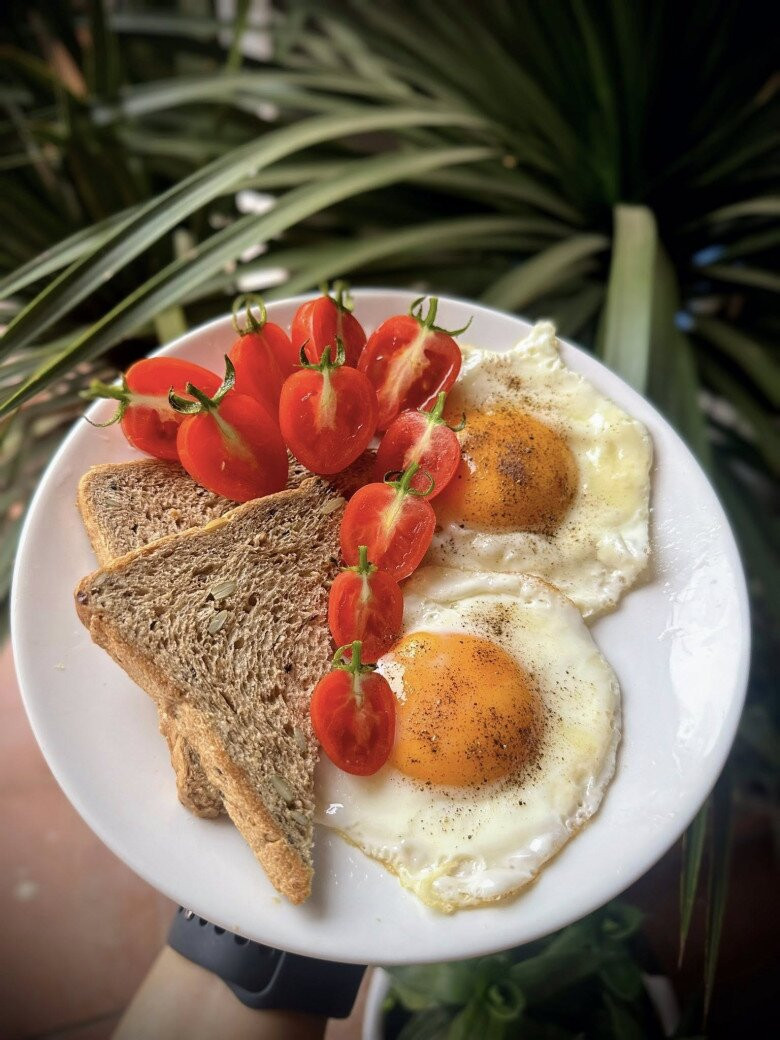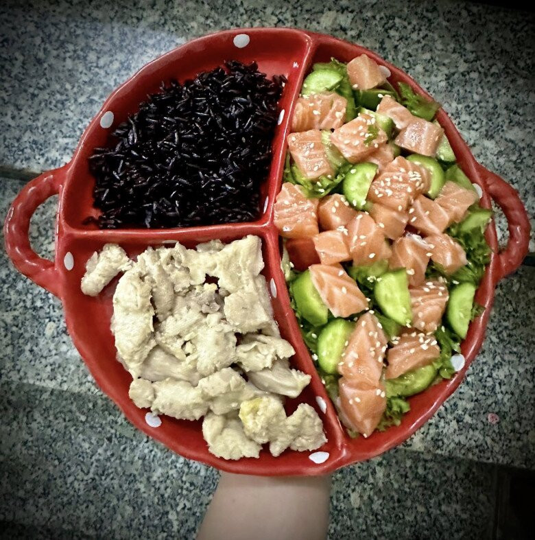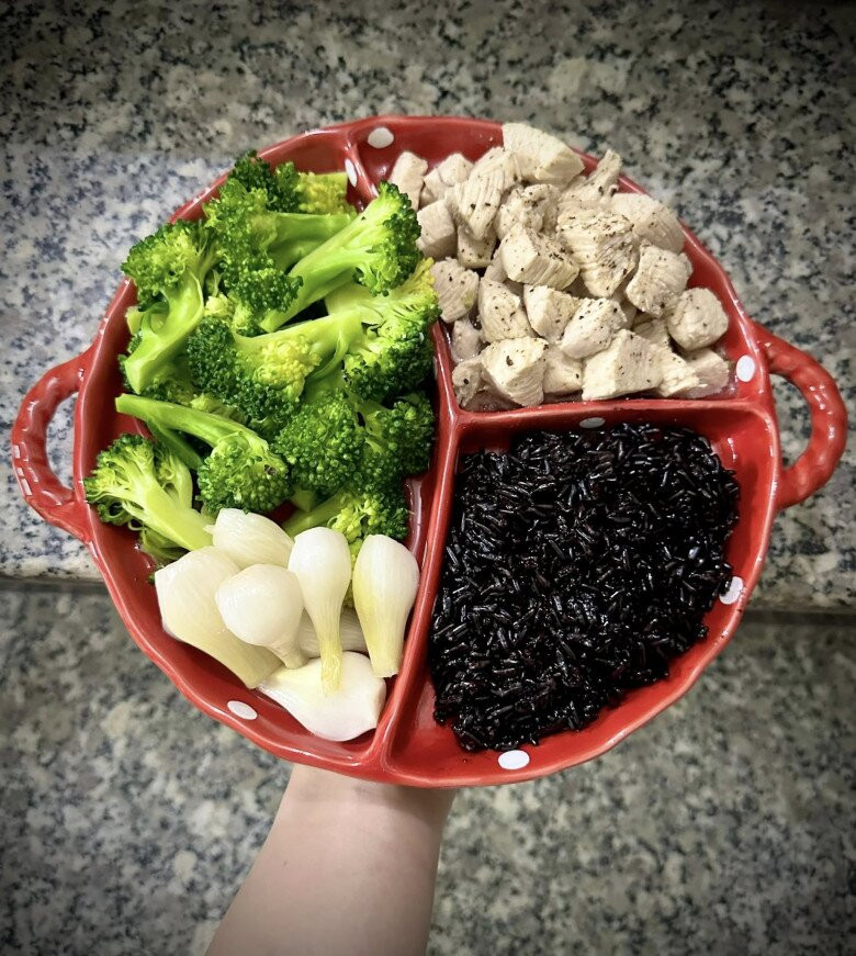 Không chỉ là nơi chữa lành, gian bếp còn là nơi để chị tự thiết kế nên một chế độ ăn uống khoa học, phù hợp với thể trạng và nhịp sống riêng của mình. Khác với nhiều phương pháp đếm calo, cân đo từng gam, chị chọn một cách làm rất để thực hiện, ăn theo quy tắc bàn tay.